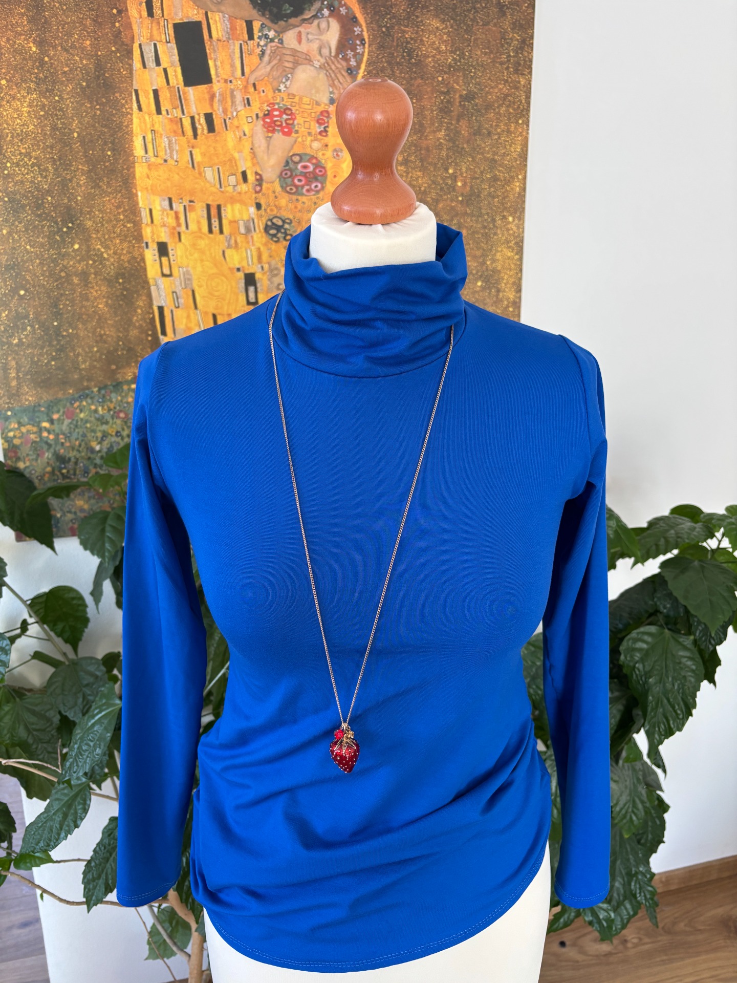 Nadčasový a univerzální střih, rolák není říliš obtažený kolem krku, a dokonale kvalitní viskózový úplet s elastanem od českého dodavatele a nádherná královská modrá.
