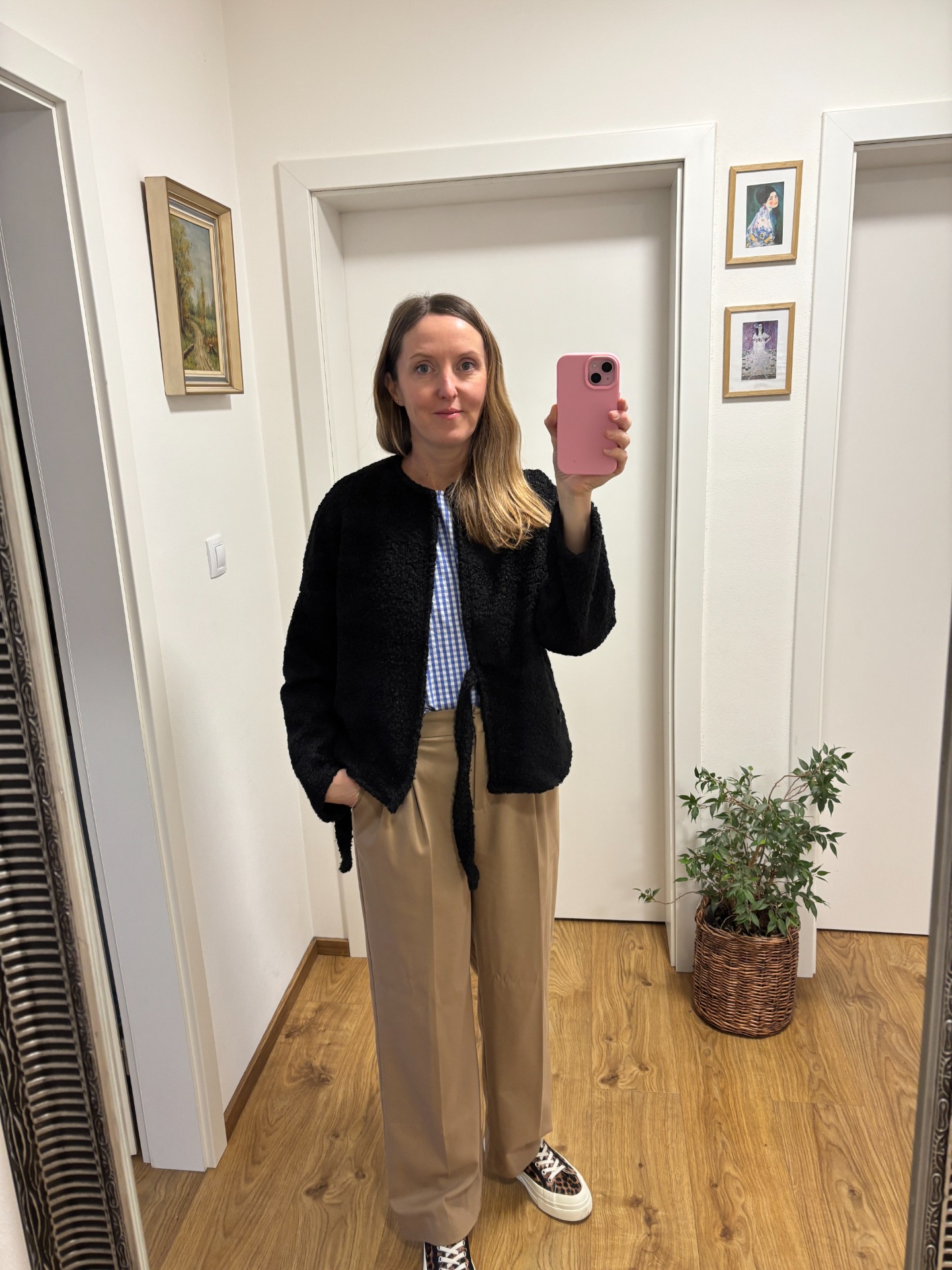 Oversized střih, který je širší a volný přes tělo i rukávy. Neomezuje v pohybu a vypadá skvěle přes šaty i ke kalhotám.